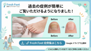 爪切り症例1 2025 2/24 症例 2025年2月24日 白石区 個人宅への訪問爪切り ご予約はこちら 担当:永田 症例 デイサービス 介護予防 巻き爪 札幌 水虫 爪切り 白石区 認知症 高齢者 よかったらシェアしてね! URLをコピーしました! URLをコピーしました! デイサービスでのフットケアサービスが開始されました。 タコ魚の目 症例1 この記事を書いた人 MAYA 関連記事 症例集を公開しました 2026年2月27日 タコ魚の目 症例1 2025年2月25日 コメント コメントする コメントをキャンセルコメント ※ 名前 ※ メール ※ サイト 次回のコメントで使用するためブラウザーに自分の名前、メールアドレス、サイトを保存する。